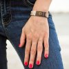 This bracelet cuff is adjustable so it can fit any wrist. I like that you can pair it with other jewelry and it looks timeless. I sit on a computer all day for my job & wearing this really helped prevent me from getting headaches!